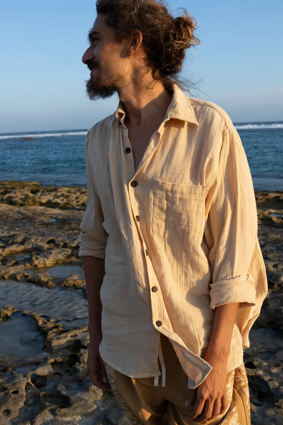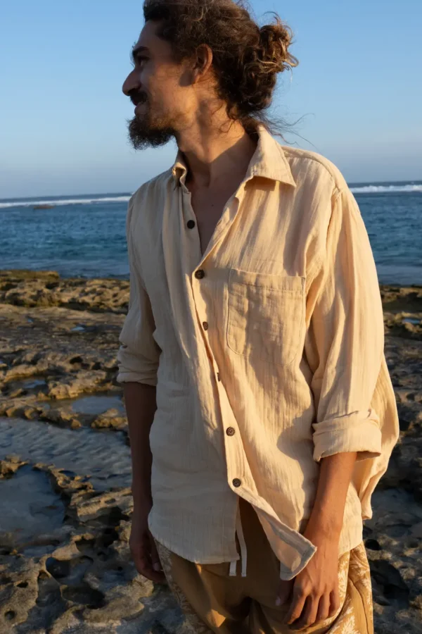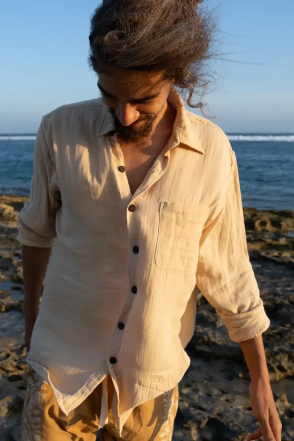 An elegant shirt never been so cool! If you are looking for a beautiful piece while keeping a relaxed style, we highly recommend this. Either by the ocean or walking by a palm tree forest, our one pocket long sleeve shirt is a key item for all occasions!