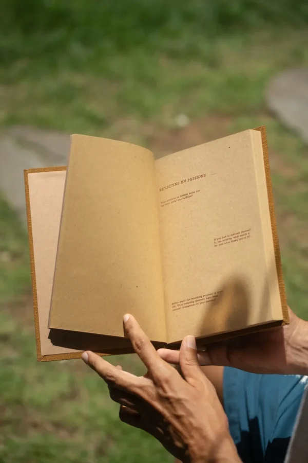 A journal to ground your intentions and give shape to what truly matters. The Purpose Journal is hand-printed and naturally dyed in rich terracotta tones, a color that embodies earth, balance, and stability. With recycled paper and sustainable materials, it offers a mindful space to set goals, reflect on your path, and reconnect with your inner compass.